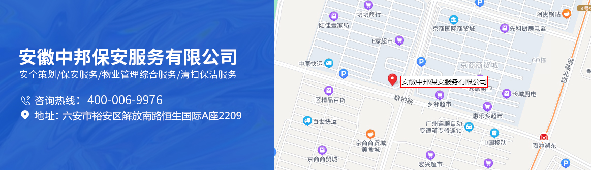 中邦服務(wù)簡介 安徽中邦保安服務(wù)有限公司總公司成立于2019年。公司 成立以來,始終以“文明值勤、優(yōu)良服務(wù)、客戶至上、安全為先” 為宗旨,以保一方平安為已任,面向社會(huì)各界等提供有償保安護(hù) 衛(wèi)、技術(shù)防范、保安培訓(xùn),是一家專業(yè)化保安服務(wù)公司。目前, 公司下為200多家客戶單位提供周到安全的保安服務(wù),遍布全省 及周邊地區(qū),現(xiàn)有各類專業(yè)人員和保安員2000余名。 中邦服務(wù)宗旨 安徽中邦保安服務(wù)有限公司是為適...